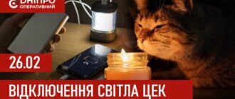 Графіки відключення світла ЦЕК Центральна енергетична компанія у Дніпрі 26 лютого 2026: повна інформація Відключення світла в Дніпрі у четвер, 26 лютого, застосовуватимуться з ранку і до вечора. Новости Днепра