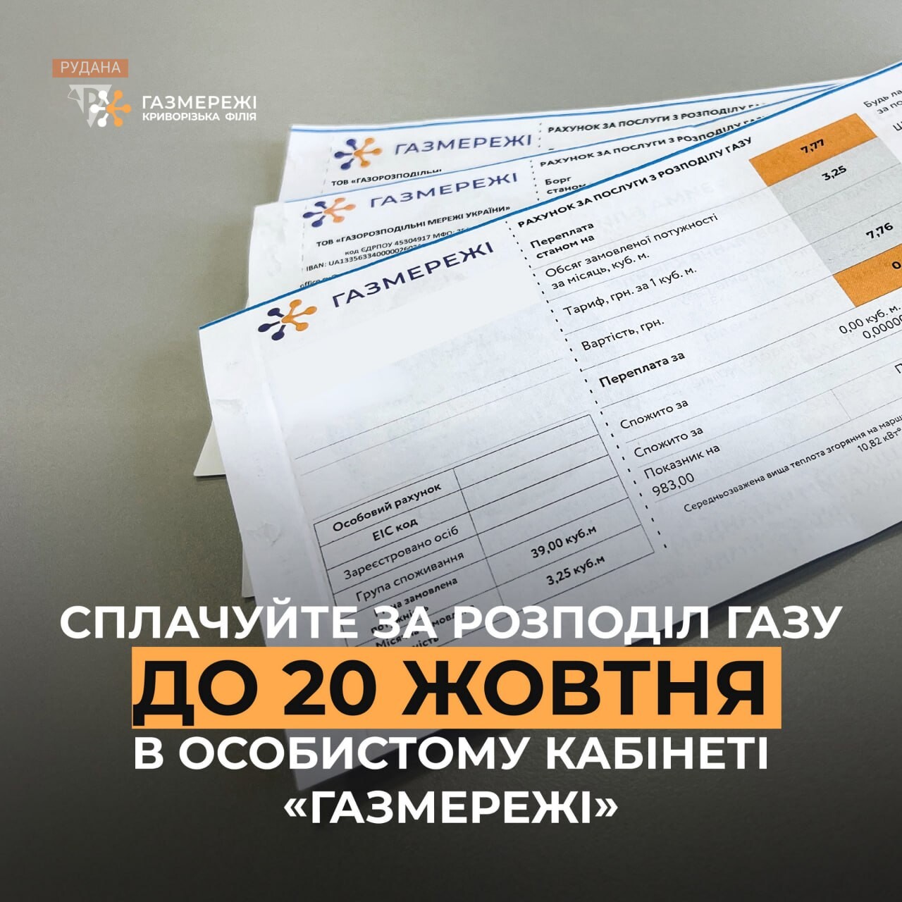Якщо ні, час ще є! Нагадуємо клієнтам Криворізької філії «Газмережі», що розрахуватись за розподіл газу потрібно до 20 числа включно.