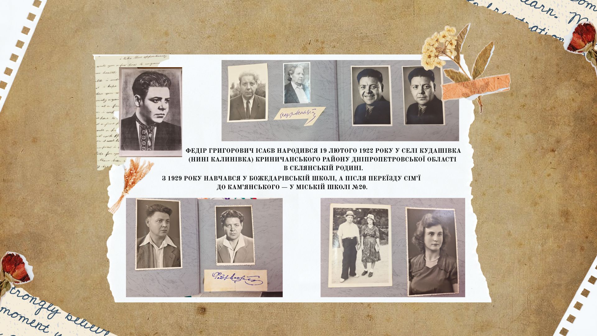 Наше місто, яке нині носить історичну назву Кам’янське, добре відоме в Україні та за її межами як край металургів, хіміків, машинобудівників, енергетиків. Але воно знане ще й своїми іменами та культурними традиціями. Багато у місті творчих людей – акторів, музикантів, художників, літераторів. Серед них жив і натхненно працював відомий поет Придніпров’я, перекладач, член Національної Спілки письменників України – Федір Григорович Ісаєв.