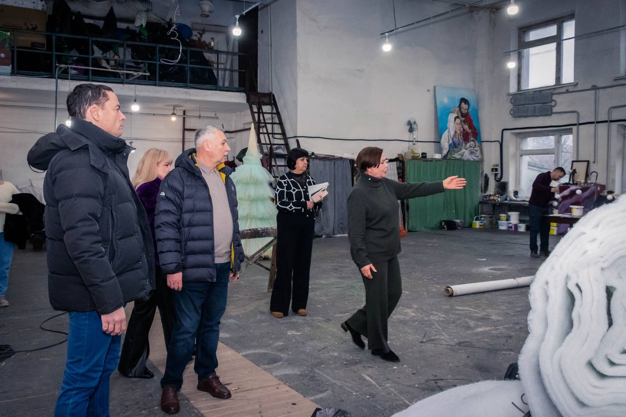 Нещодавно Академічний музично-драматичний театр ім. Лесі Українки Кам’янського відзначив потрійний ювілей – 125 років Основній сцені, 90 років від заснування першого професійного театру в місті та 45 років чинному театру. Це стало важливою подією не лише для творчого колективу, а й для всього міста. Саме тому, щоб детальніше ознайомитися з роботою театру, його внутрішніми процесами та розвитком установи 11 грудня, до театру завітали Кам’янський міський голова Андрій Білоусов, перший заступник міського голови з питань діяльності виконавчих органів міської ради Олександр Чернишов та начальник управління культури Жаннета Сокуренко. Цього разу візит був присвячений не зустрічі з мистецтвом, як зазвичай, а відкриттю секретів внутрішнього життя великого і злагодженого театрального механізму. Гості переглянули історичну експозицію, прониклися тонкощами творення образів гримерами-пастижерами, побачили, як створюються та зберігаються костюми, реквізит та декорації. Кожна деталь, кожен елемент – від ескізу до повного втілення – проходить повний цикл виробництва на території театру. Щире зацікавлення викликала робота освітлювального та звукорежисерського цехів, сценічного кола та його механізму під сценою, механічне обладнання сцени, теристорна, яка регулює роботу всього освітлювального обладнання. Керівниця театру Маргарита Кудіна відверто розповіла про всі досягнення і труднощі, поділилася думками щодо оптимізації роботи. Фіналом екскурсії стало відвідання репетиції нової вистави «Легенда про піаніста», прем’єра якої відбудеться 19 та 20 грудня. На завершення візиту Андрій Леонідович подякував колективу за тепло, професіоналізм та відданість справі, підкреслив важливість роботи театру для жителів Кам’янського та привітав усіх із прийдешніми святами.