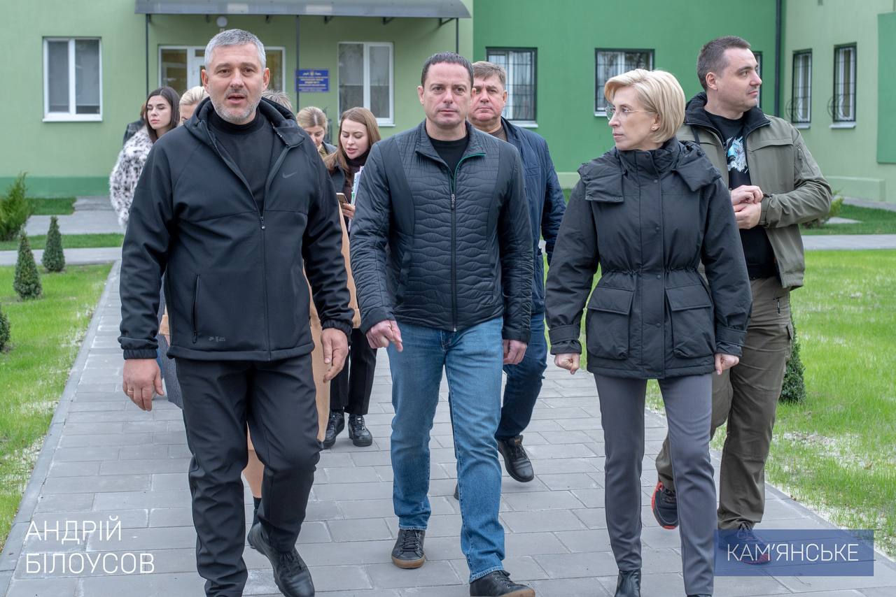 Також разом із Іриною Верещук відвідали низку важливих соціальних об’єктів Кам’янського. Побували в оновленому осередку для вивчення предмета «Захист України», де старшокласники здобувають практичні знання з тактичної медицини, самозахисту та основ безпеки. Тут створено сучасні умови для навчання та виховання патріотичної молоді.