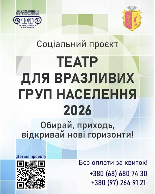 Друзі, маємо світлу новину! У березні у Кам’янському театрі ім. Лесі Українки стартує проєкт безплатного відвідування вистав та концертів для пільгових категорій громадян.