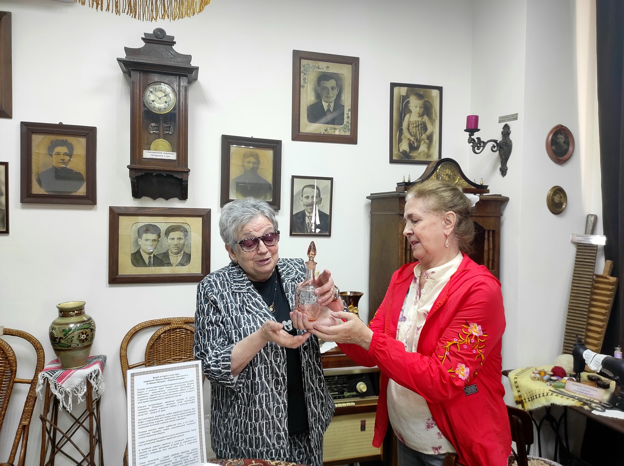 Музей синагоги у Кам’янському розширює колекцію предметів побуту. Нещодавно культурний простір отримав старовинну цукерницю з родини Малкіних, яку передала до музею «А Ідише Нешуме» учасниця міжнародного освітнього проєкту “Колель. Тора” Ірина Малкіна. І ось нещодавно до музею завітала іще одна представниця цього проєкту і добра приятелька Наталія Горіна із черговим цікавим подарунком. Вона передала збережений в її родині графін з кольорового скла, що належав її бабусі. Тож музейна колекція раритетів із єврейських родин Кам’янського-Дніпродзержинська поступово зростає. А враховуючи той факт, що вироби зі скла важко зберегти такий тривалий час та у буремні роки, ці предмети представляють особливу історичну цінність.