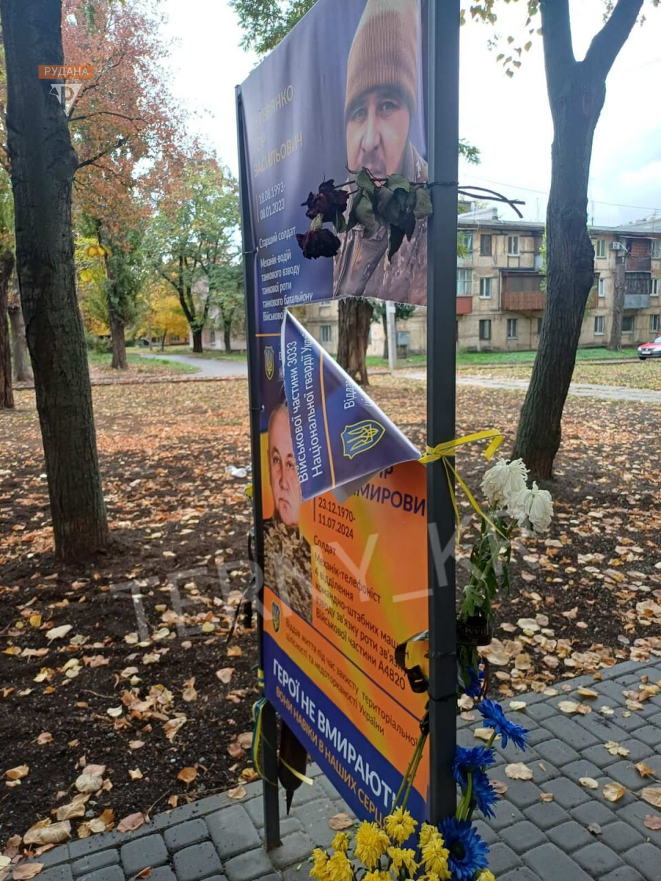 Порізали пам»ять. В Тернівському районі вандали знищили банер загиблим захисникам. Алею пам‘яті полеглих Героїв району відкрили два тижні тому на Північному ГЗК.