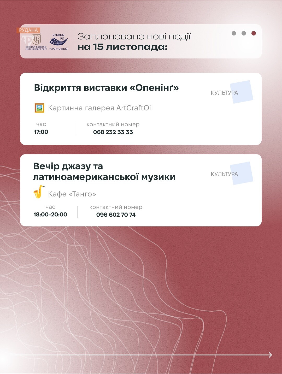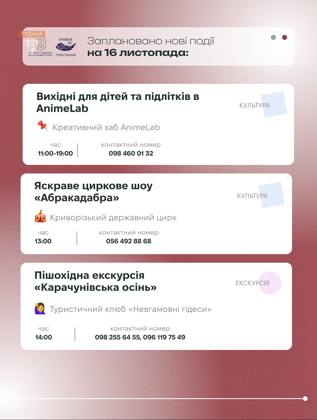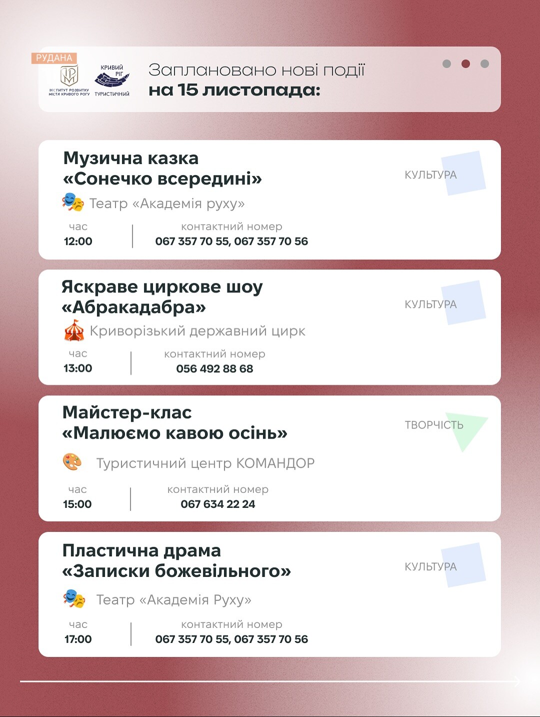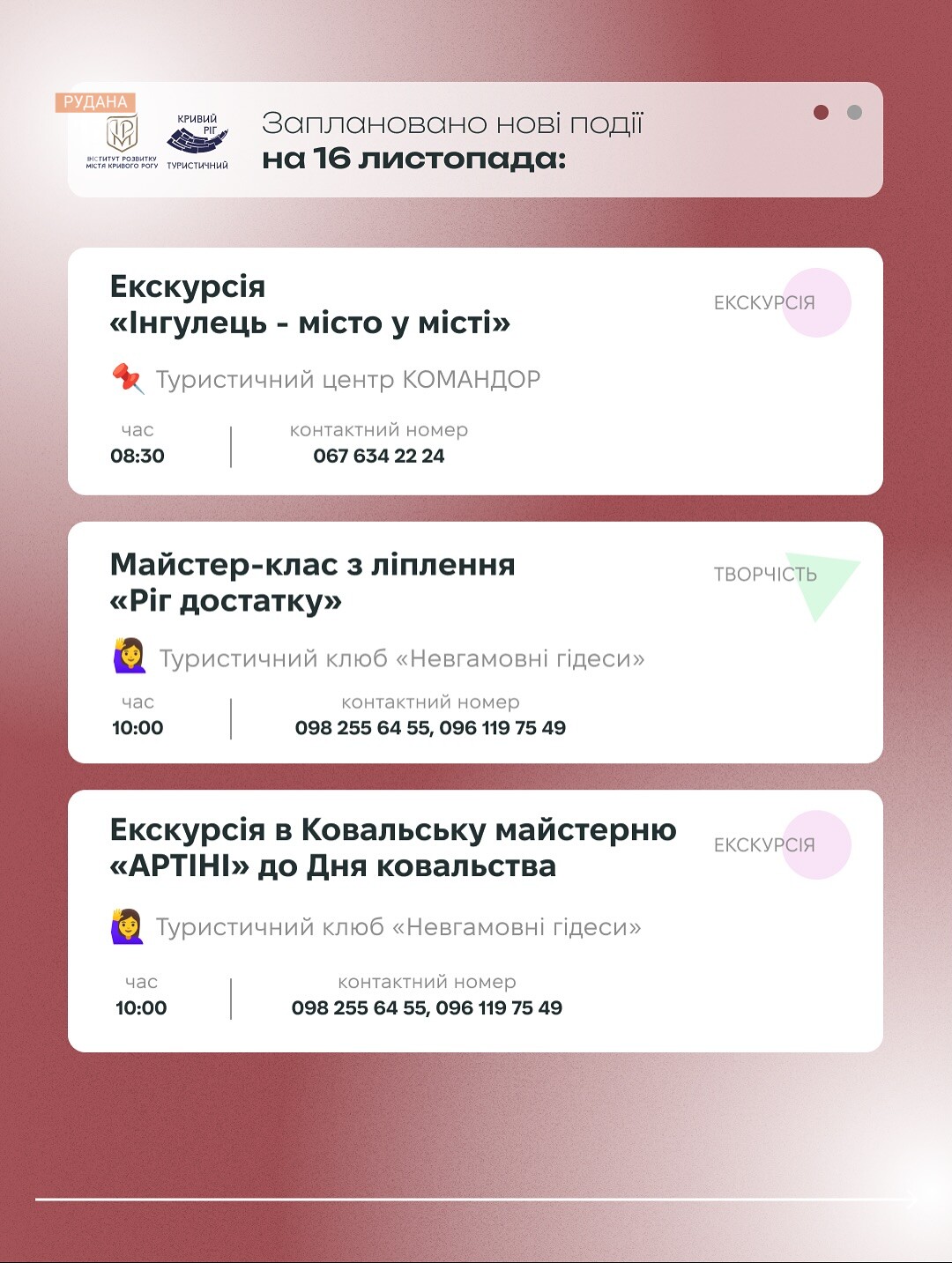 Криворіжців запрошують скористатися нагодою для нових вражень. Провести ці вихідні з користю для себе, надихнутися новою порцією вражень і релаксу. Знайти себе у мистецтві, подорожах, хобі і спілкуванні з цікавими людьми.