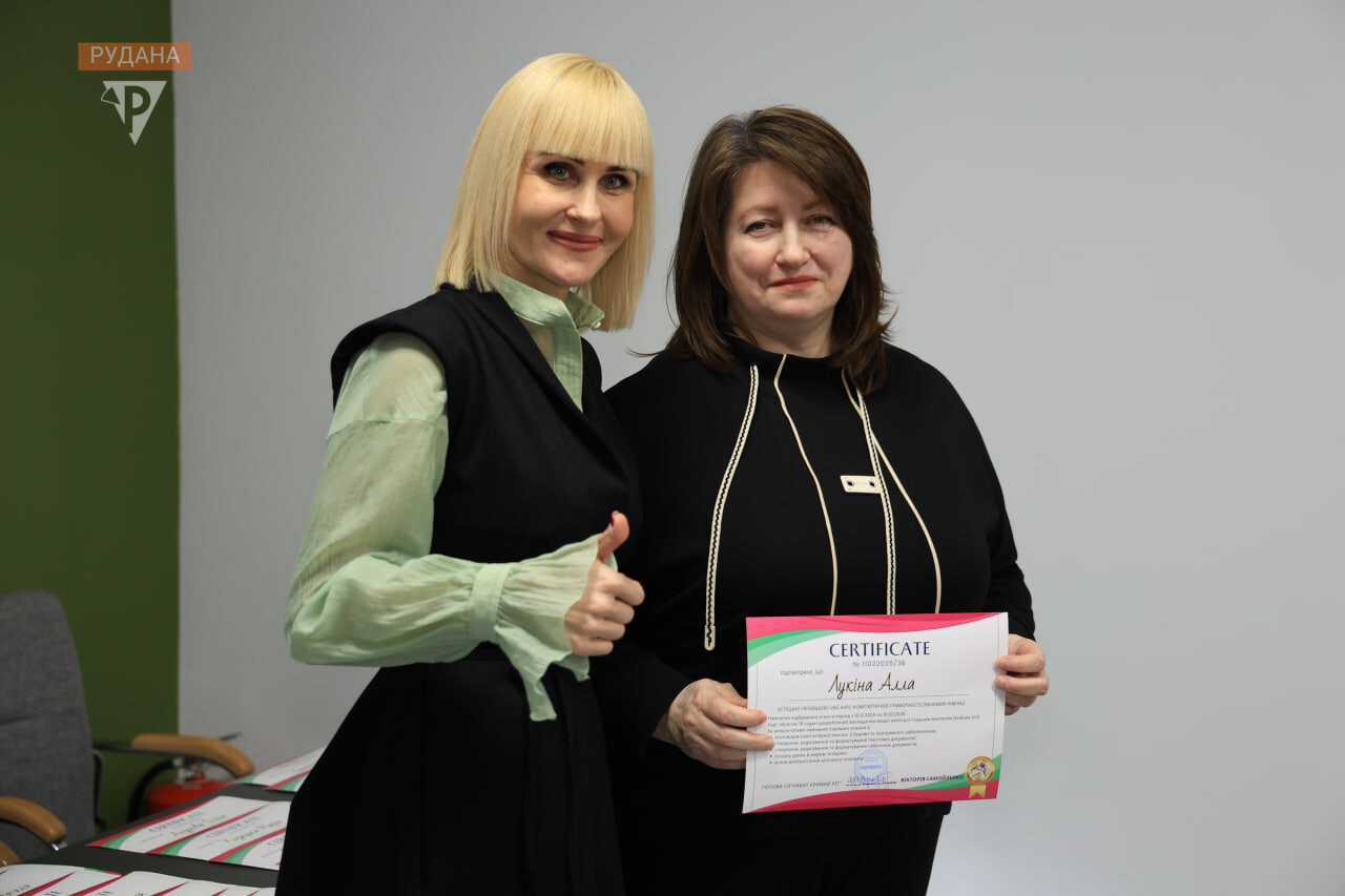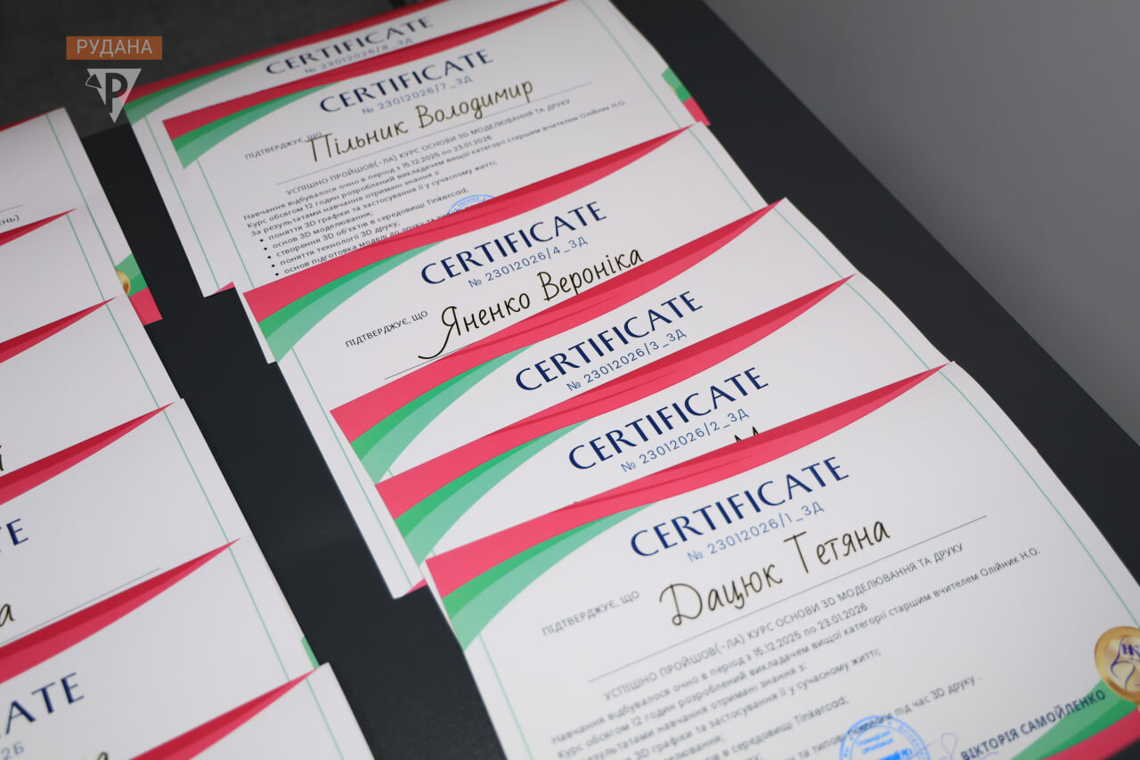 «Сьогодні ми вручаємо сертифікати по трьом напрямкам. Це 3D моделювання та друк, які тривали 12 годин — двічі на тиждень. Це базовий курс комп’ютерної грамотності — 16 годин. І 20-годинний поглиблений курс комп’ютерної грамотності. Є набір на наступний курс, це 6 груп, де навчатимуться 56 криворіжців. Стартуємо за два тижні», — розповідає викладачка курсів комп`ютерної грамотності Наталія Олійник.