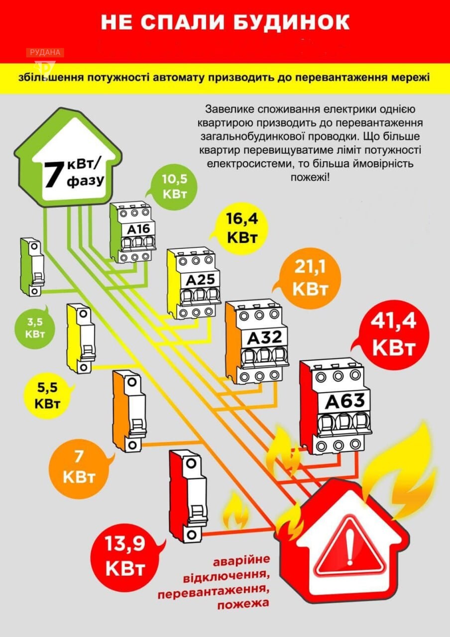 Після появи світла НЕ МОЖНА одночасно вмикати всі електроприлади.