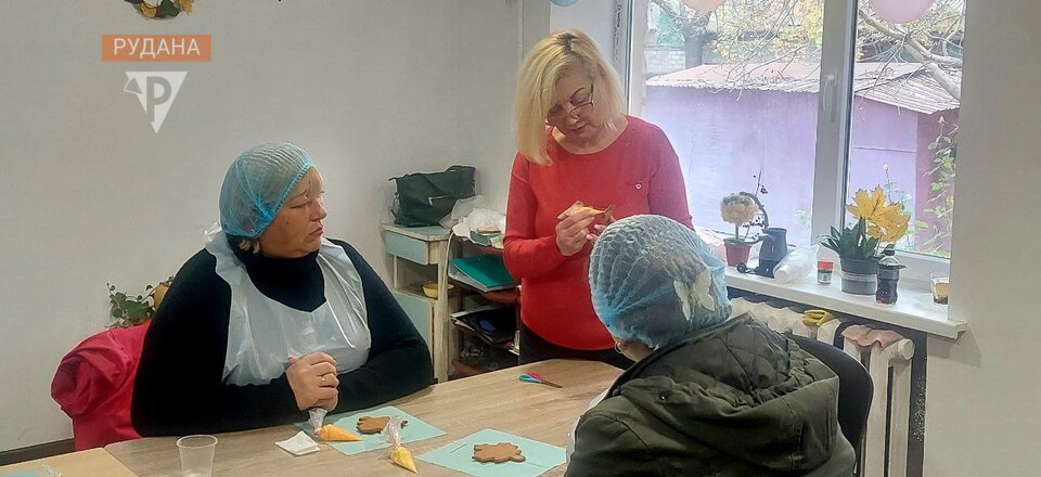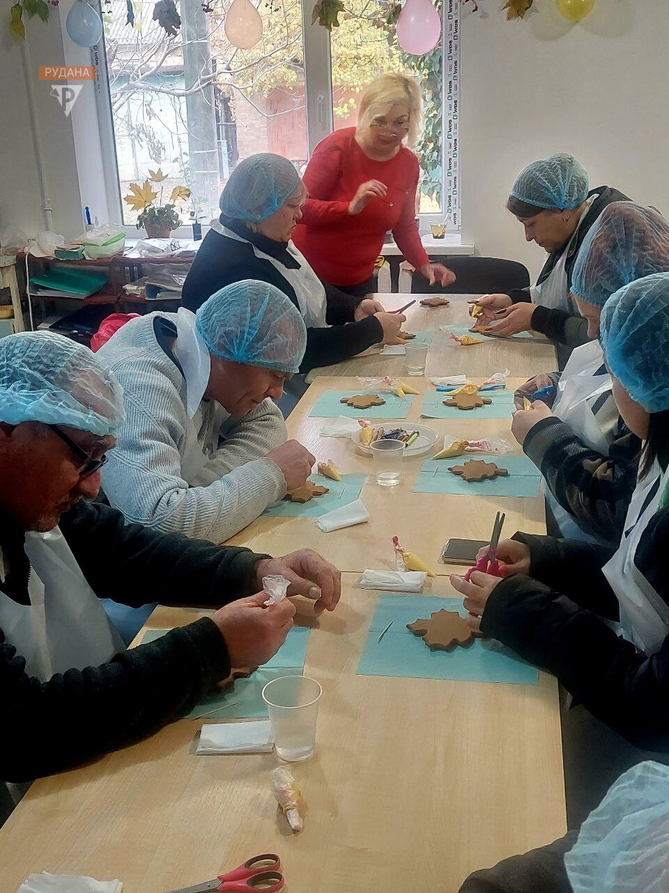 Сьогодні вчилися художнього оформлення пряників. У притулку панує дружня атмосфера. За великим столом зібралися мешканці закладу, які приїхали до нашого міста з регіонів, охоплених війною. Через агресію росіян вони втратили свій дім, роботу і майно.