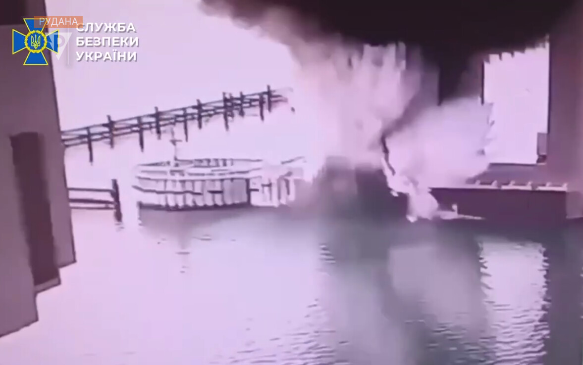 Операція тривала декілька місяців, — прокоментували сьогодні у Службі безпеки. — Агенти СБУ замінували опори цього незаконного об’єкта. І сьогодні, без жодних жертв серед цивільного населення, о 4:44 перший вибуховий пристрій був активований! Підводні підпірки опор сильно пошкоджено на рівні дна — 1100 кг вибухівки в тротиловому еквіваленті цьому посприяли. Фактично міст перебуває в аварійному стані.