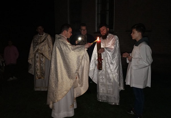 Одне з основних святкувань — Великодня вігілія. В римсько-католицькому храмі Павлограда вона пройшла увечері Великої суботу. Святкування розпочалось із запалення Пасхалу від вогнища у дворі храму. Це символізує Воскреслого Христа, який розсіює темряву.