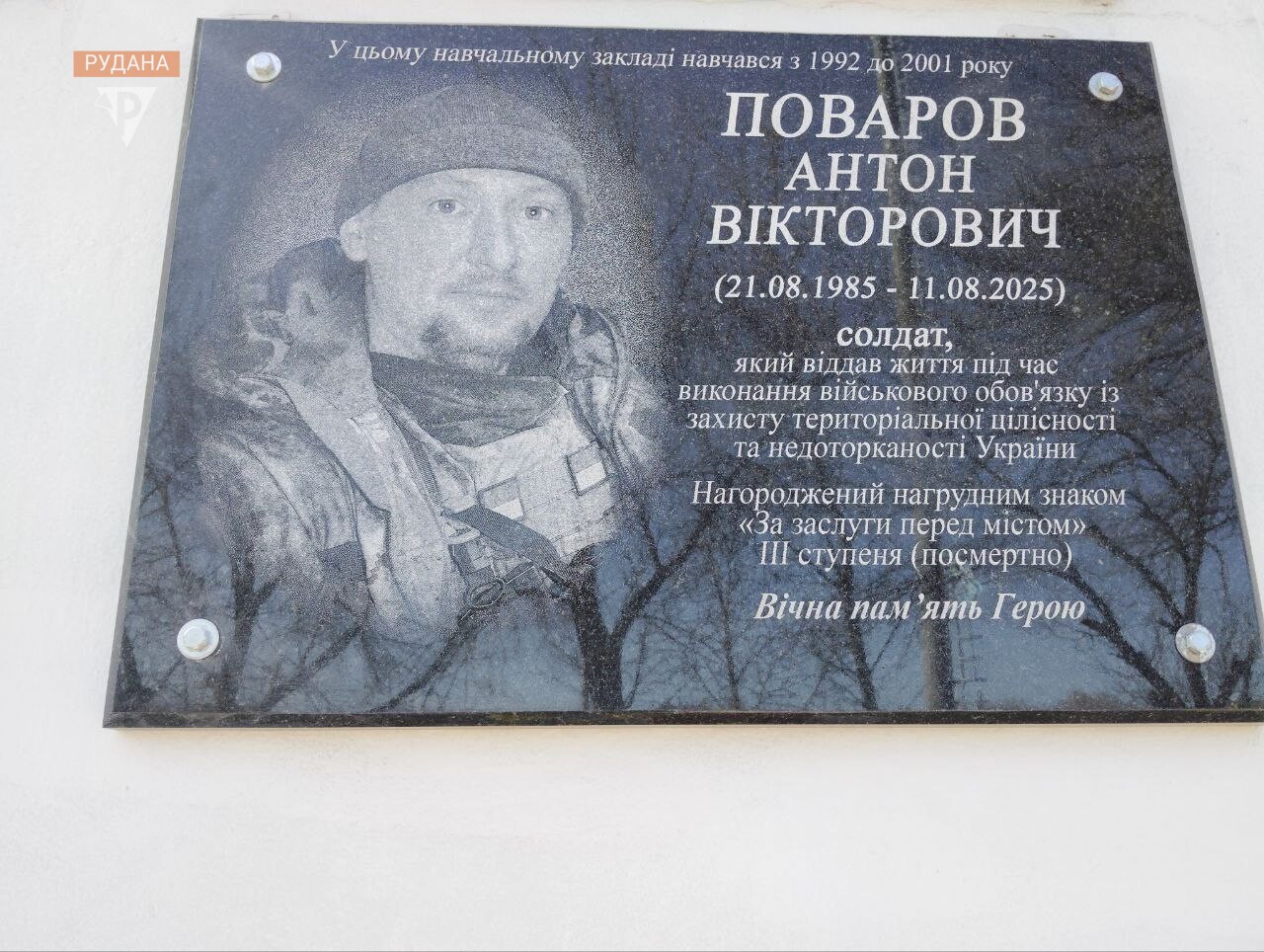 На фасаді Криворізької 34-ї гімназії з’явилася пам’ятна дошка на честь колишнього випускника Антона Поварова. На захист України чоловік став у серпні 2023 року.