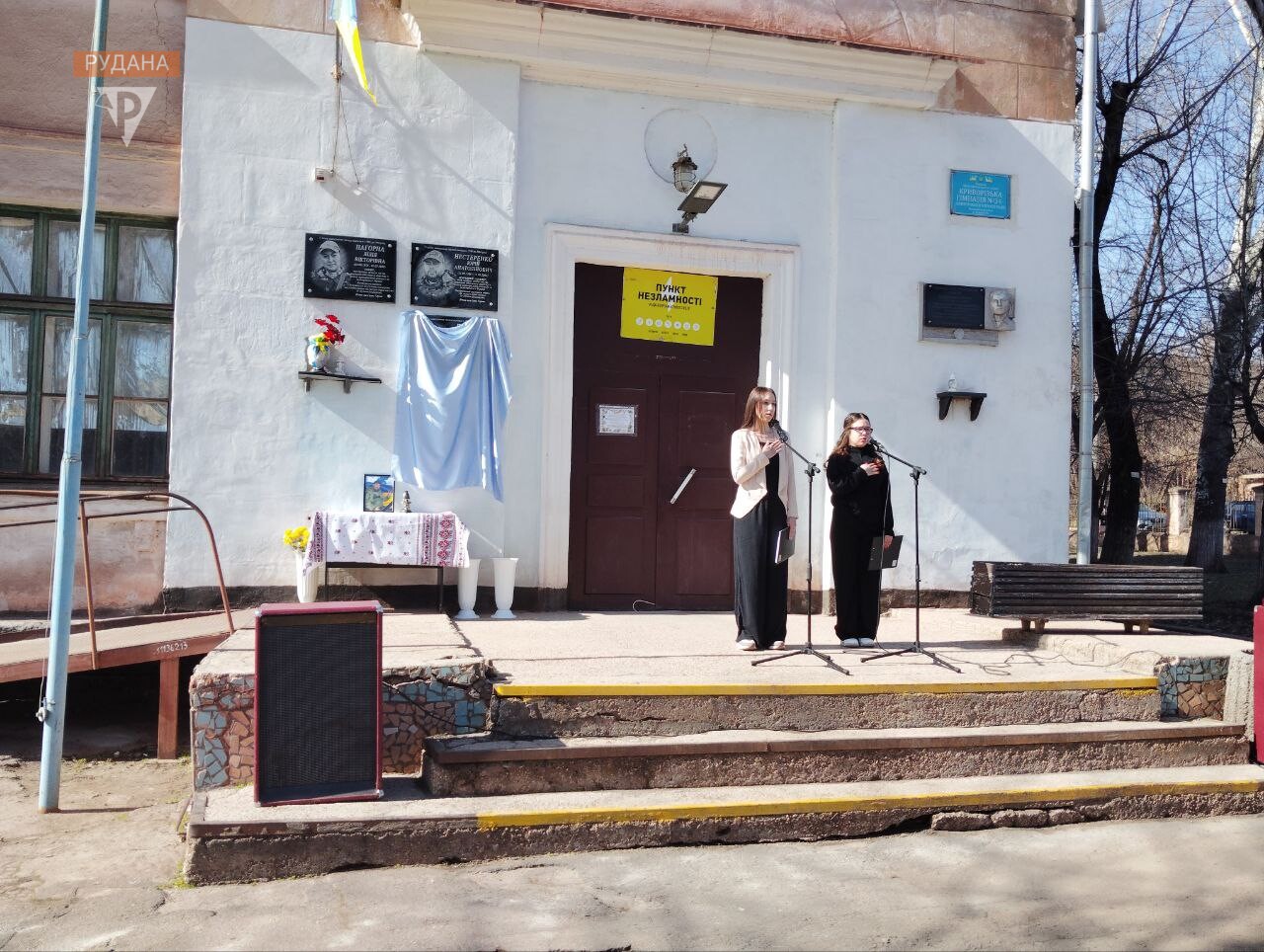 На подвір’ї зібралися учні, педагоги, рідні та друзі Антона. Це вже третя меморіальна дошка у пам‘ять про загиблих випускників закладу.