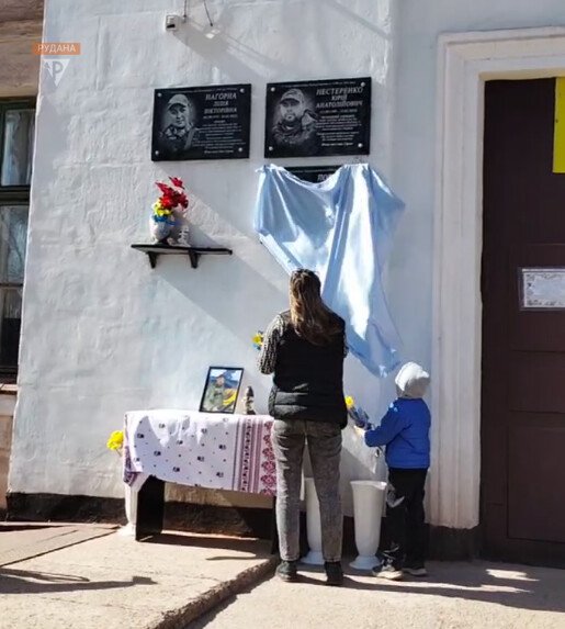 Вдова Оксана тримає за руку 13-річну доньку і не стримує сліз: