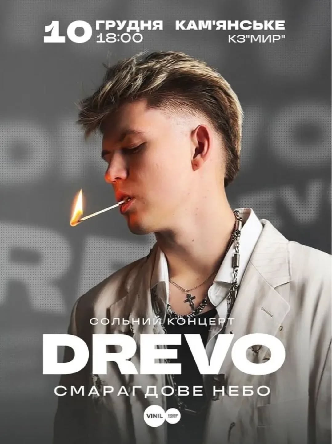 Готуйтеся до музичної події року! 10 грудня о 18:00 у КЗ “МИР” відбудеться мега-очікуваний сольний концерт молодого та шалено популярного українського артиста – DREVO!