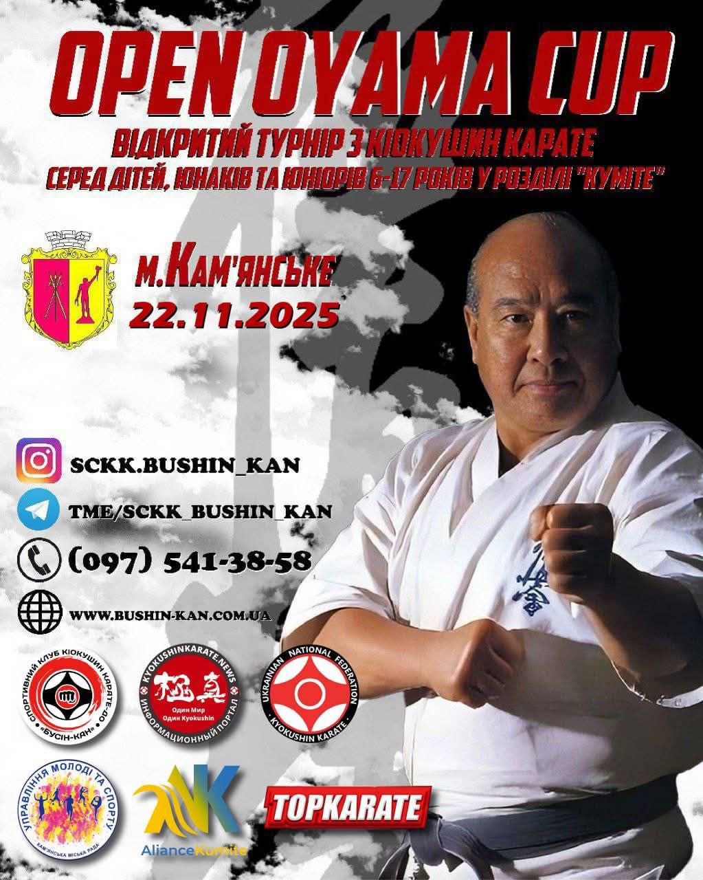 У Кам’янському 22 листопада пройде відкритий турнір «OPEN OYAMA CUP» з Кіокушин карате у розділі куміте серед дітей віком від 6 до 17 років. До участі запрошені спортсмени двох категорій підготовки — «Новачки» та «Досвідчені».