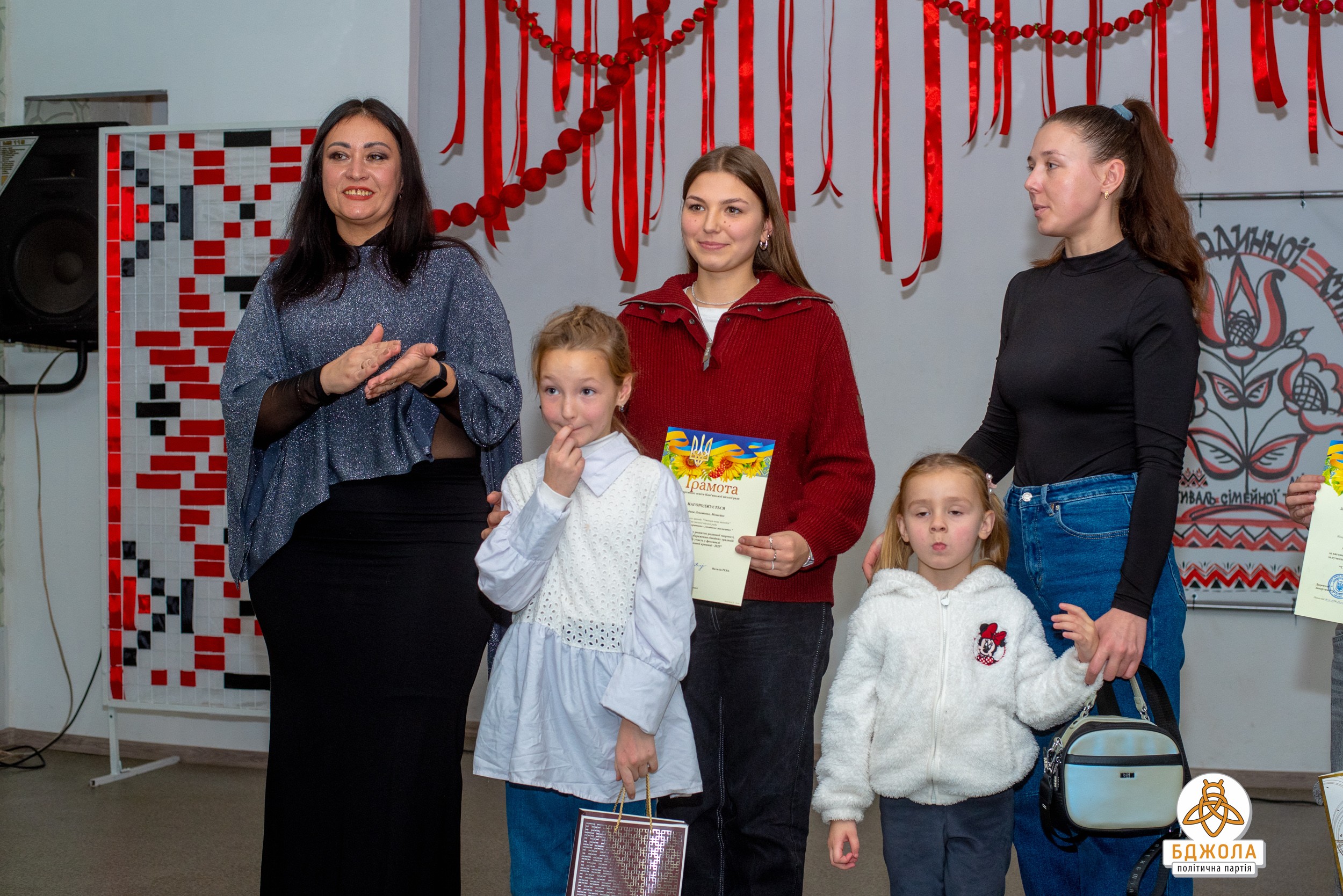 В атмосфері родинної єдності та творчості учасників фестивалю вітали словами вдячності, дипломами та цінними подарунками директор департаменту освіти міської ради Наталія Рева, представники ГО «Бджола». Також підтримав подарунками творчі багатодітні родини відділ з питань сімейної та гендерної політики департаменту соціальної та ветеранської політики міської ради.