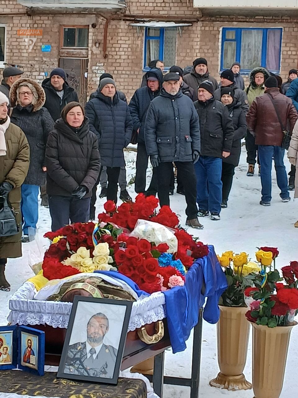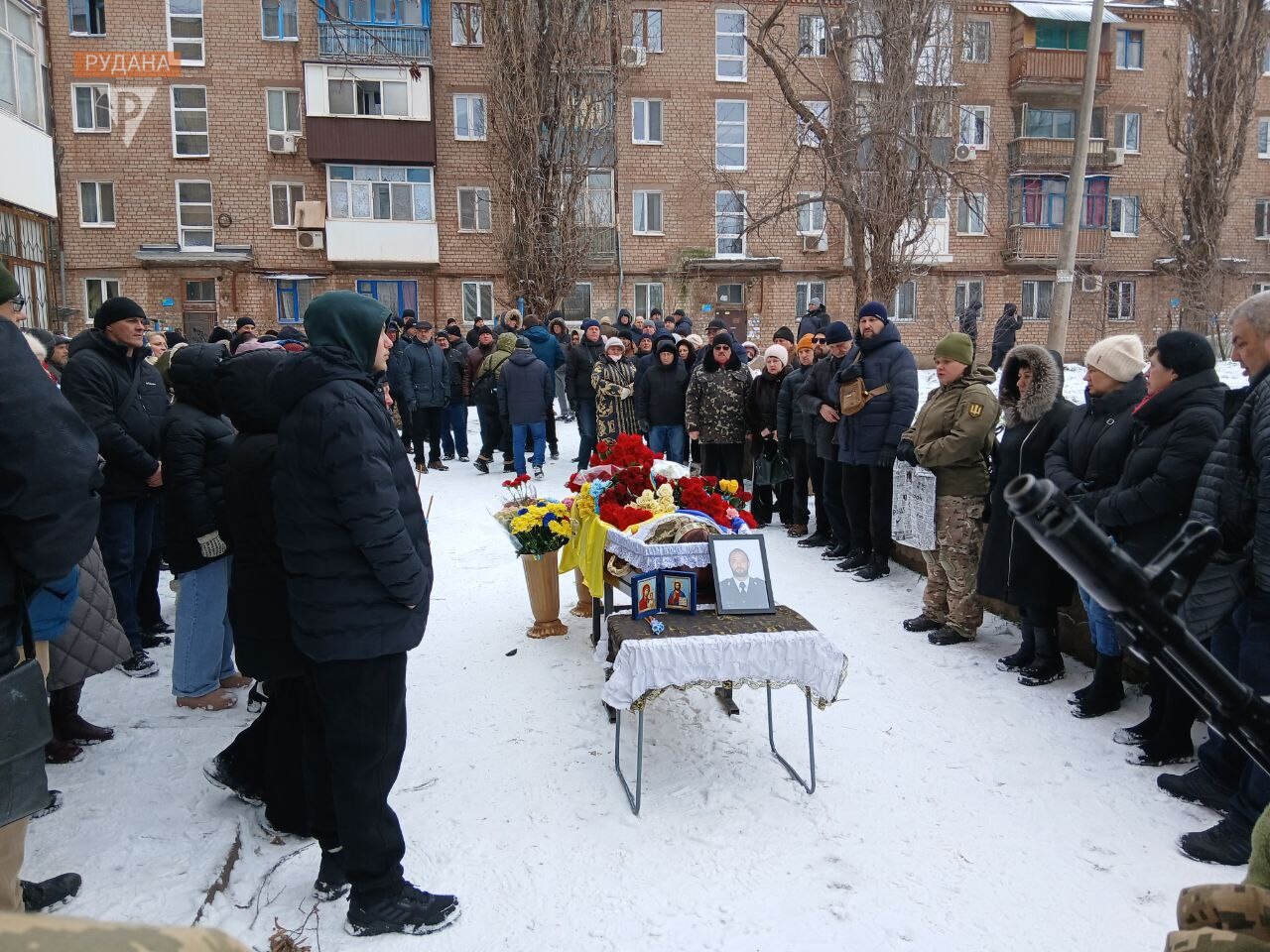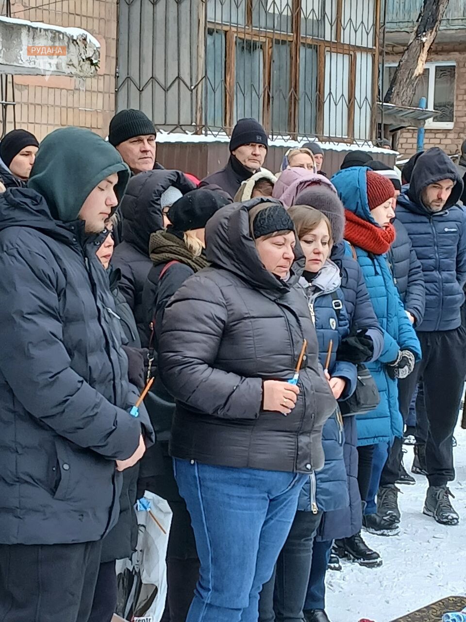 Хуртовина мете, а місто прощається з загиблим криворіжцем Андрієм Моторним. Вклонитись полеглому захиснику прийшло дуже багато людей, які добре знали і любили його як світлу, чуйну й дуже добру людину. Журба і смуток — на обличчях містян.