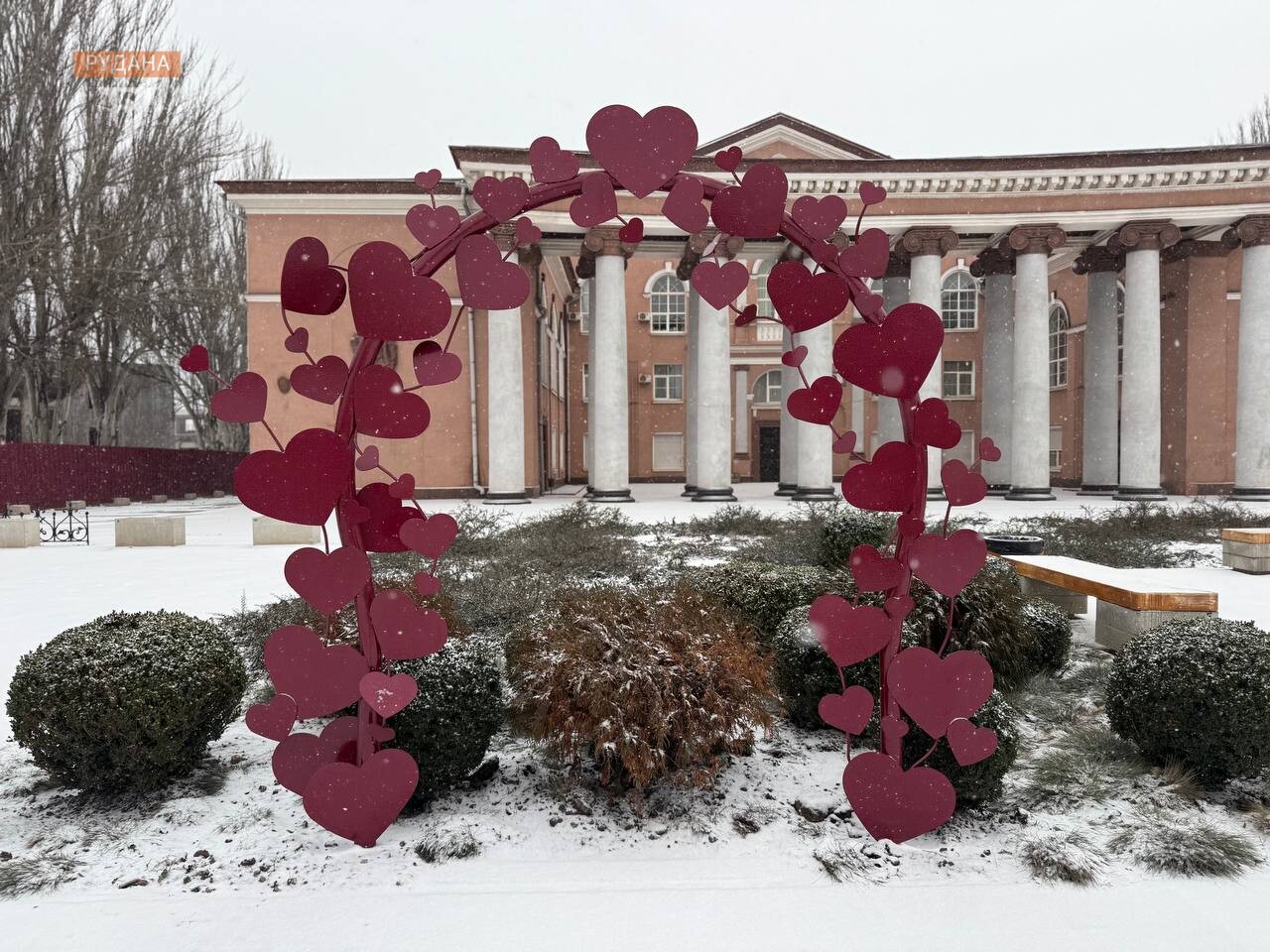А перед Палацом Металургів, навпроти місцевого РАЦСу, облаштували романтичні локації для закоханих і молодят. Тут можна зберегти найтепліші миті поруч із символічним місцем для кожної пари.