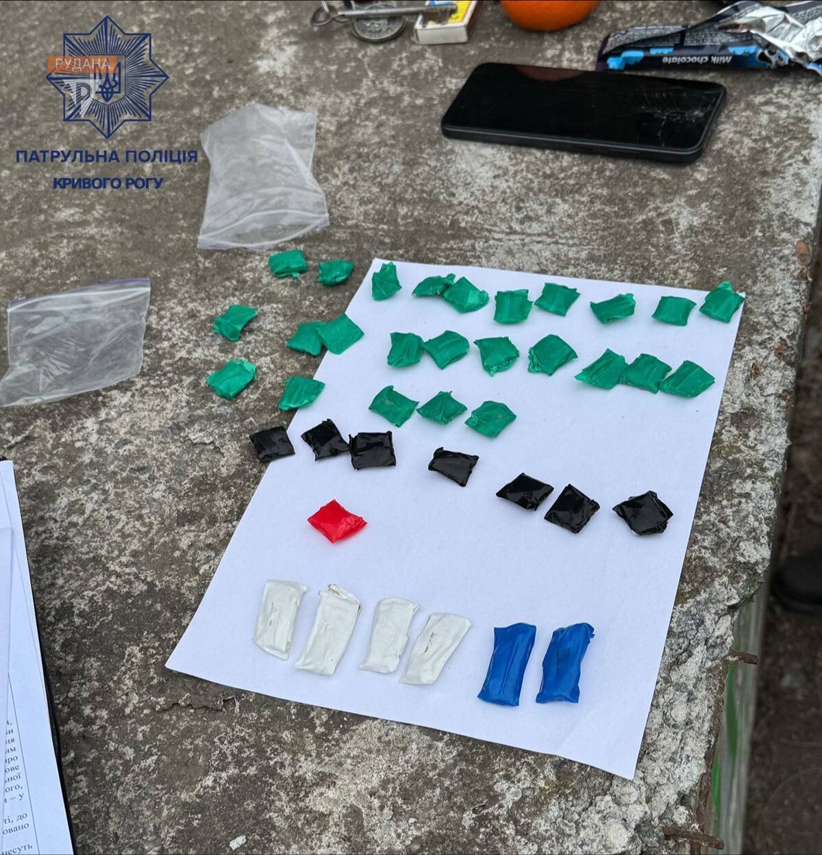 На вулиці Десантній у Кривому Розі патрульні затримали 52-річного наркодилера з 39 згортками наркотиків.