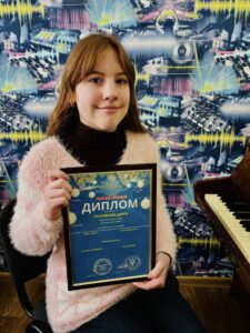 Дар’я Головкова (викладач Ксенія Зубріліна) — виборола диплом Лауреата І премії, майстерно виконавши композицію “Ранок” Лариси Іванюшиної.