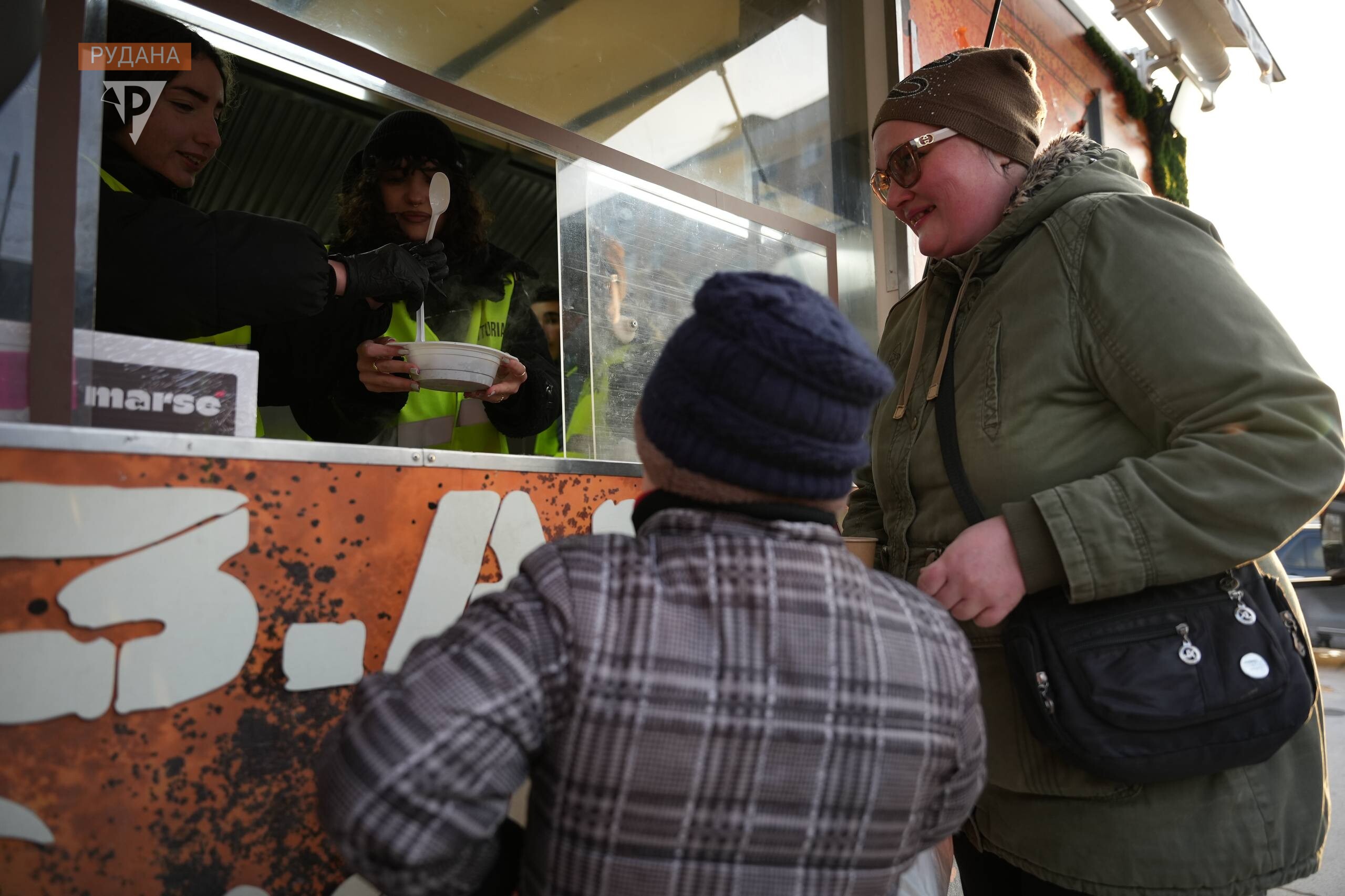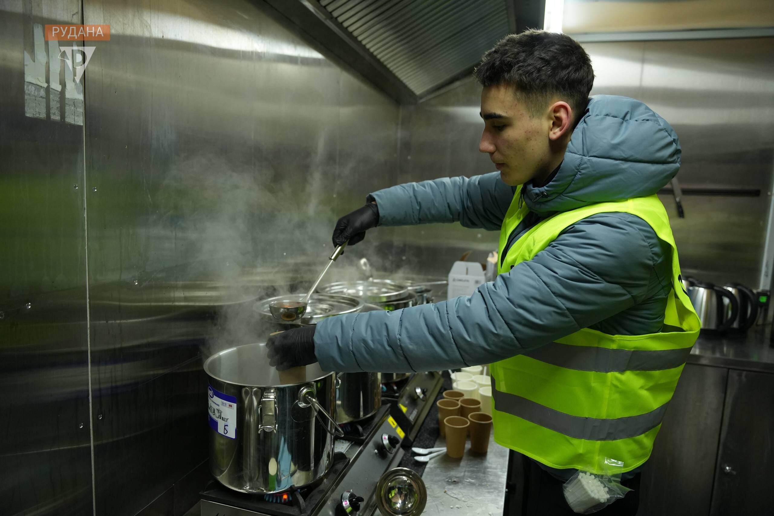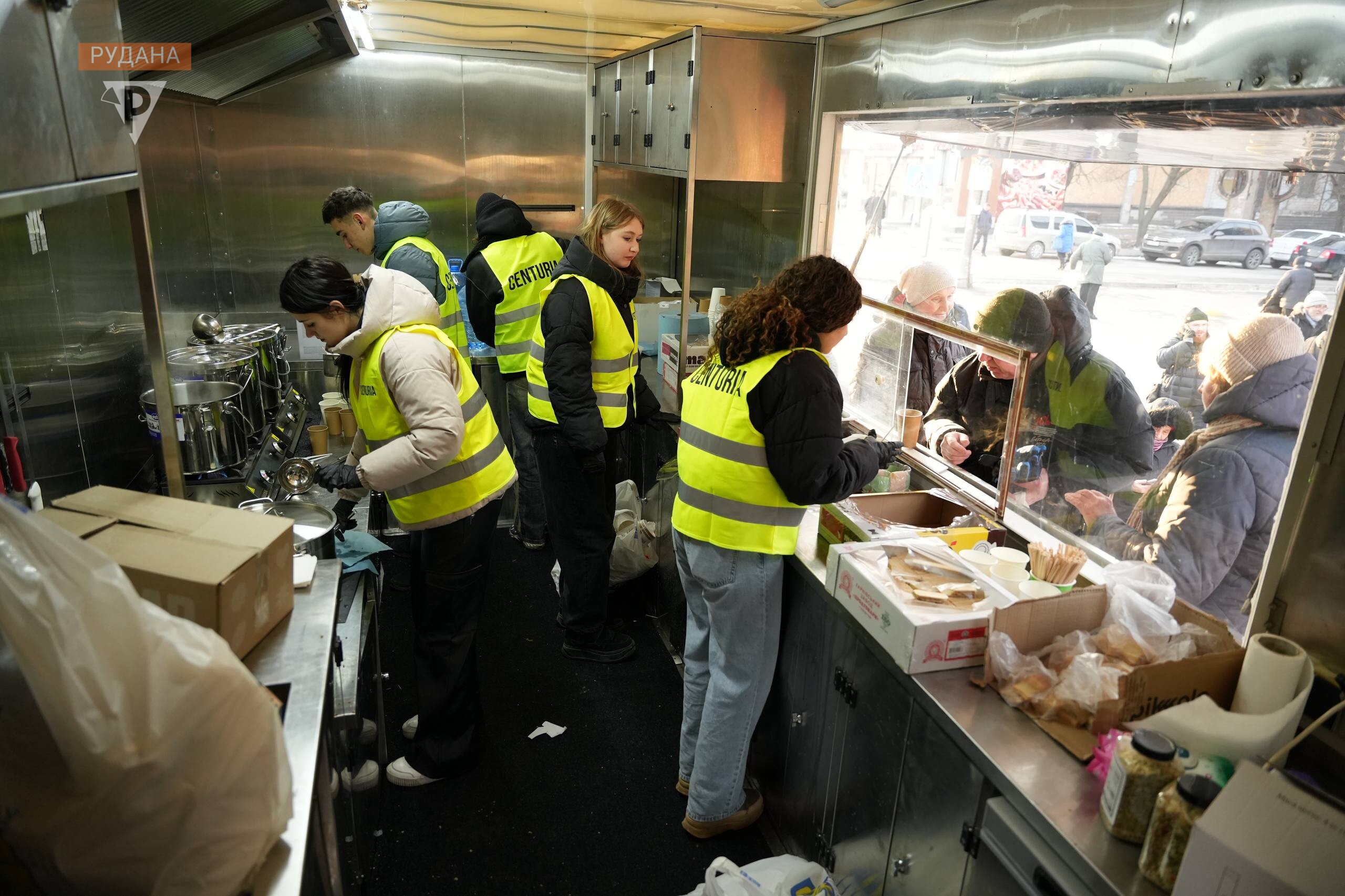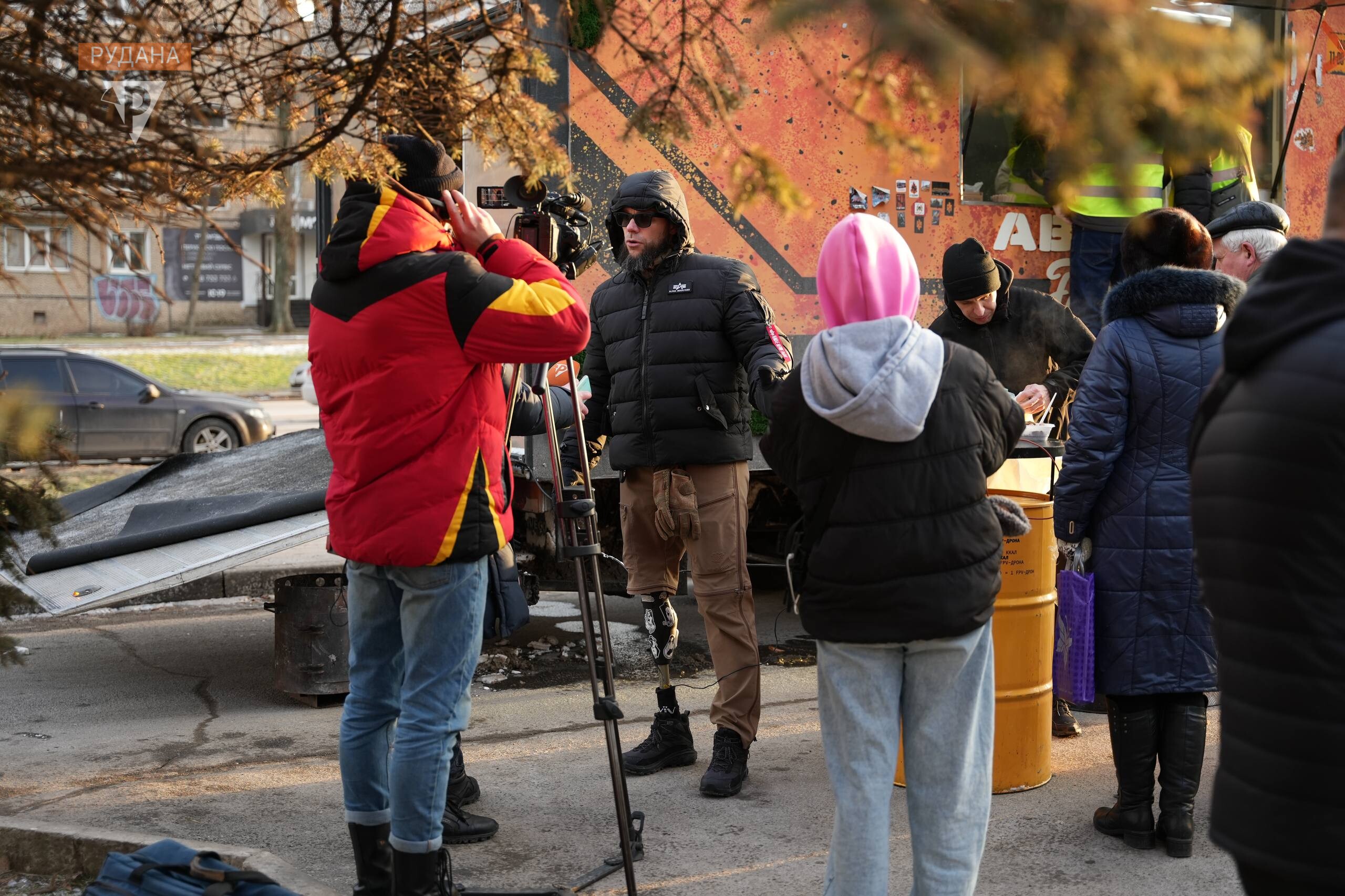 «Мій син почав цей проєкт у Києві. В нього самого в будинку ані світла, ані тепла, ані води. Тому й запропонував хлопцям-побратимам: «Давайте допоможемо людям, хто чим може». Його ж ідея приїхати у Кривий Ріг. Я допомагаю хлопцям готувати їжу, гарячі страви, бульйон, узвар. Вони в мене щось запитують, я підтримую їх як можу. Хлопці скупляються, везуть харчі. Підняти таку величезну каструлю і спустити – теж допомагають», — розповідає Марія Володимирівна.