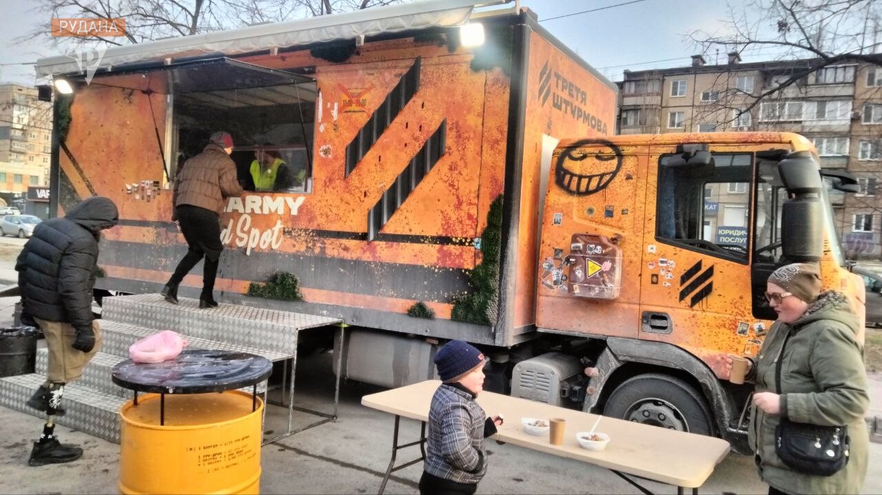 Зігрівайся та заряджайся з Третьою штурмовою. Незвичний десант висадився учора в Кривому Розі. В Саксаганському районі хлопці та дівчата розгорнули польову кухню та станцію для підзарядки гаджетів. Організатори — ветеранська спільнота 3-го армійського корпусу.