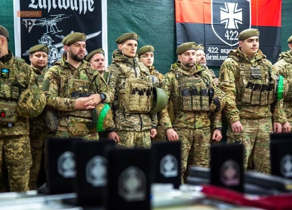 Шана й честь! Військових 422 окремого полку безпілотних систем «Luftwaffe» відзначили державними нагородами, орденами, медалями, відзнаками від Головнокомадувача ЗСУ, міністра оборони, командувача Сухопутних військ, Оперативного командування «Південь». Нашим лицарям також вручили нагородну зброю.