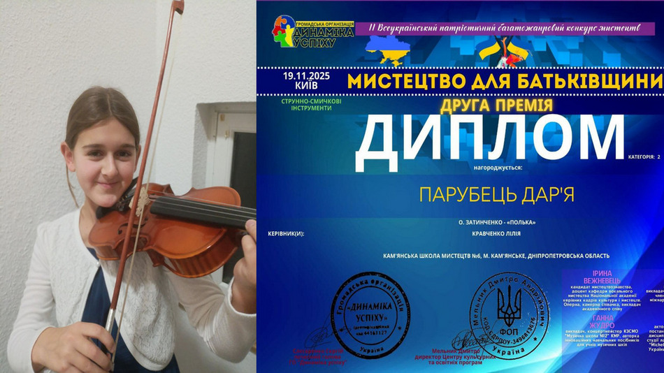 Щиро вітаємо Дар’ю Парубець та її викладача Лілію Кравченко з цим значним здобутком і бажаємо невичерпного натхнення та подальших блискучих творчих звершень!